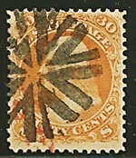 U.S. #68 fine, fancy socked on the nose star and crescent cancel.