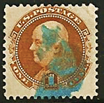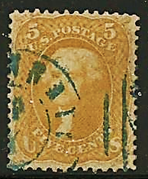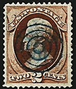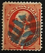 U.S. #155 vf, with BLUE ROUND GRID fancy cancel.