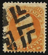 U.S. #78b, gray, vf with negative “L” in round gear fancy cancel.