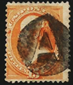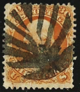 U.S. #119 vf, with socked on the nose heavy rare ORANGE round segmented fancy cancel, A REAL BEAUTY!