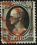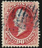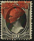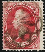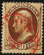 U.S. #155 vf, with socked on the nose RED ROUND GRID cancel.