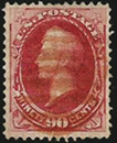 U.S. #117 very fine, nice margins, with RED socked on the nose fancy cancel, Scott Cat. adds $150 for a red cancel.