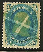 U.S. #63 vf, socked on the nose nice green cross, 2026 Scott Cat. adds $250.