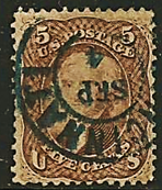 U.S. #75 f-vf, socked on the nose BLUE Sep 4 Cincinnati cancel.