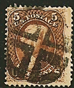 U.S. #63 f-vf fancy square cross socked on the nose.