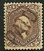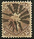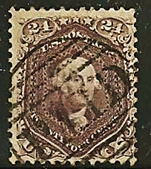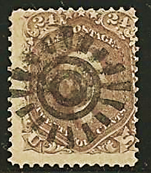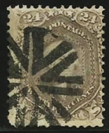 U.S. #70a, brown lilac, f-vf, socked on the nose PAID in round grid.