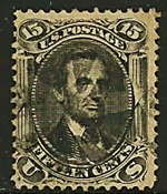 U.S. #121 vf, with very nice socked on the nose PINWHEEL fancy fancel.