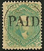 U.S. #63 f-vf with socked on the nose fancy PAID in ring cancel, a beauty!